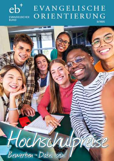 Das – sowie die vielfältigen Inhalte, die in den Arbeiten der Preisträgerinnen und -träger zur Sprache kommen, stehen in dieser Ausgabe der „Evangelischen Orientierung“ im Mittelpunkt. Die große Zahl derer, die auf die Ausschreibung des Hochschulpreises reagieren, zeigt, wie attraktiv dieses Angebot für den akademischen Nachwuchs ist. Die eingereichten Untersuchungen spannen einen weiten Bogen, der auf die Kernthemen des Evangelischen Bundes – Konfessionskunde und Ökumene – bezogen ist. Auch gestatten sie einen Einblick in die theologische Arbeit an den Universitäten. Was dort diskutiert wird, spiegelt sich in den eingesandten Beiträgen wider.