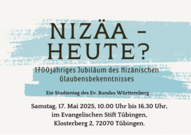 weiterlesen »Herzliche Einladung unseres Landesverbandes Württemberg zum Studientag “Nizäa – heute?” am Samstag, 17. Mai 2025, 10 Uhr bis 16.30 Uhr, im Evangelischen Stift Tübingen.