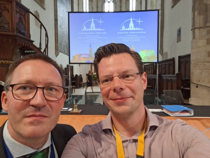 Dr. Mario Fischer, Generalsekretär GEKE, und Dominik Koy, Publizistik-Referent unseres Konfessionskundlichen Instituts