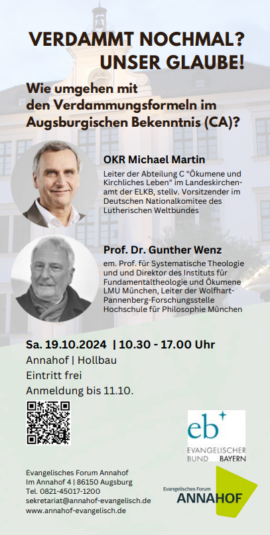 Auf dem Weg zum Jubiläum des Augsburgischen Bekenntnisses (Confessio Augustana) im Jahr 2030 blicken wir auf die Wurzeln des evangelischen Glaubens direkt vor Ort in Augsburg. Herzliche Einladung an alle theologisch Interessierten, Prädikant:innen und Pfarrer:innen zum zweiten Studientag unseres Landesverbandes Bayern am Samstag, 19. Oktober 2024, 10.30 Uhr bis 17 Uhr. Wir freuen uns auf Sie!