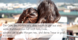 weiterlesen »Der Monatsspruch Oktober 2024: “Die Güte des HERRN ist’s, dass wir nicht gar aus sind, seine Barmherzigkeit hat noch kein Ende, sondern sie ist alle Morgen neu, und deine Treue ist groß”, Klagelieder 3:22-23.